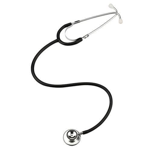Diaphragme de 4,3 cm (1,7 po) de diamtre avec anneau anti-froid Ð Aluminium couteurs binauraux rglables en aluminium ; tube flexible en PVC de 56,5 cm (22 po) ; longueur totale de 75,5 cm (29,7 po) Comprend un stthoscope et un diaphragme, des couteurs binauraux rglables et (1) jeu d’embouts auriculaires noirs en PVC filetage ferme